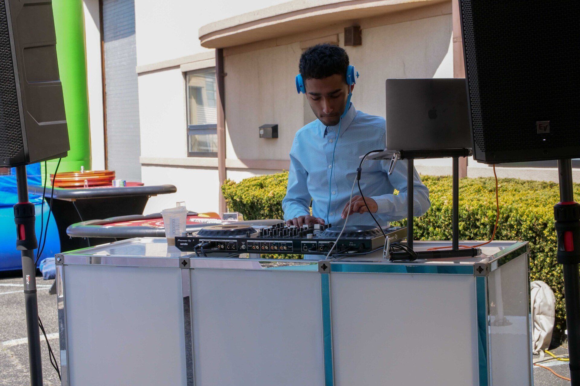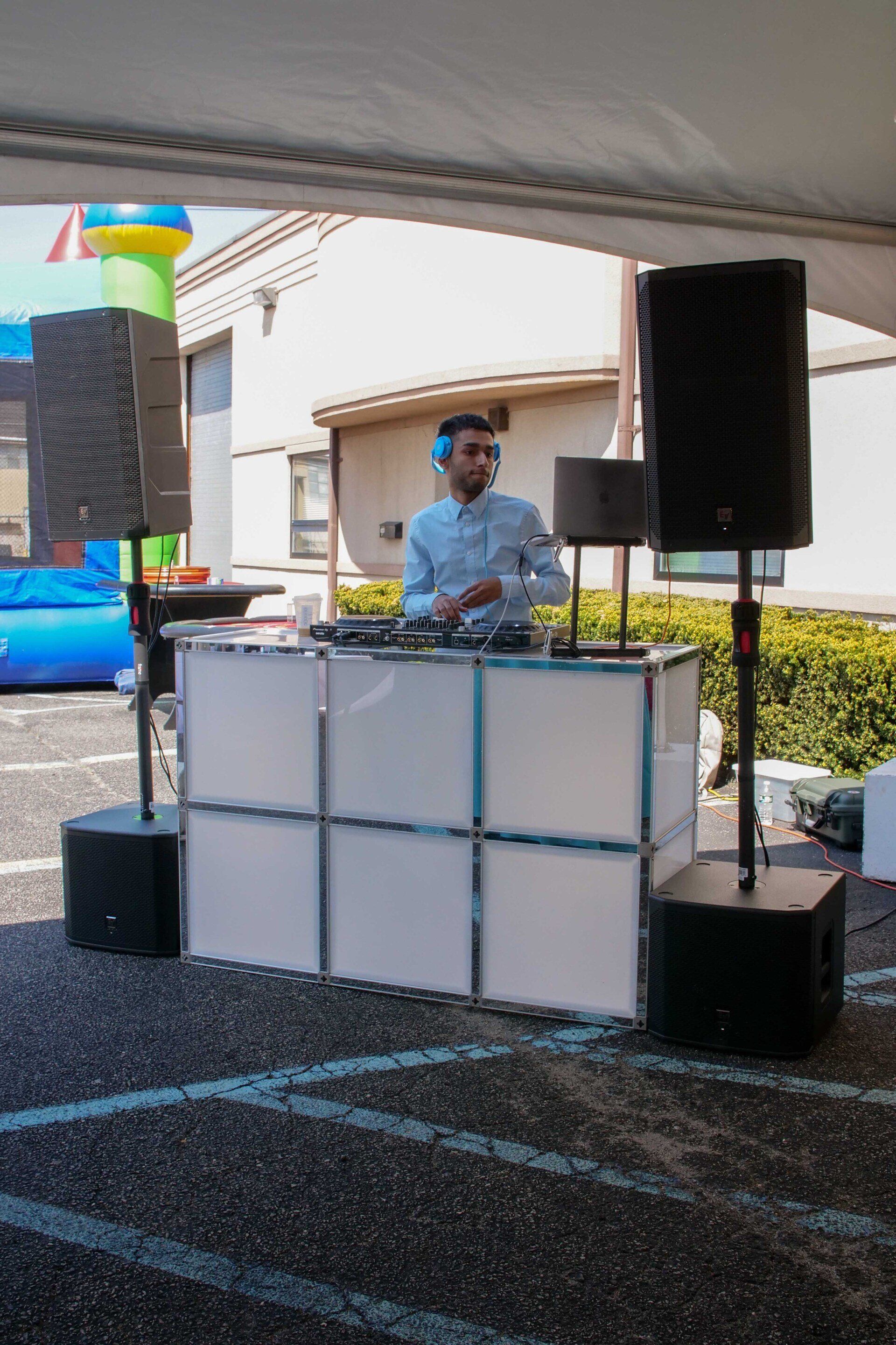 Experience a high quality sound system to entertain up to 300 of your guests and an All WHITE DJ setup, with a glowing white front board and white speakers.